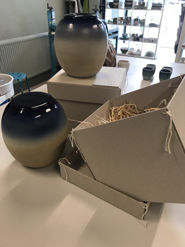 My husband died in June 2016. After a few months I went looking for a nice urnthat suited him. After a long search I came across "Lies Ceramics" in the Blokhuispoort in Leeuwarden. The introductory meeting immediately gave me a good feeling, so I decided to let her make the urn. She iscalm and understanding and has a warm personality. We discussed the design together and then Lies started working. I was involved in every step of the creation. Everything was negotiable and gradually new ideas emerged. The end result has become exactly as I wanted. Thanks to the dedication, talent and creativity of Lies it came to a wonderful result!