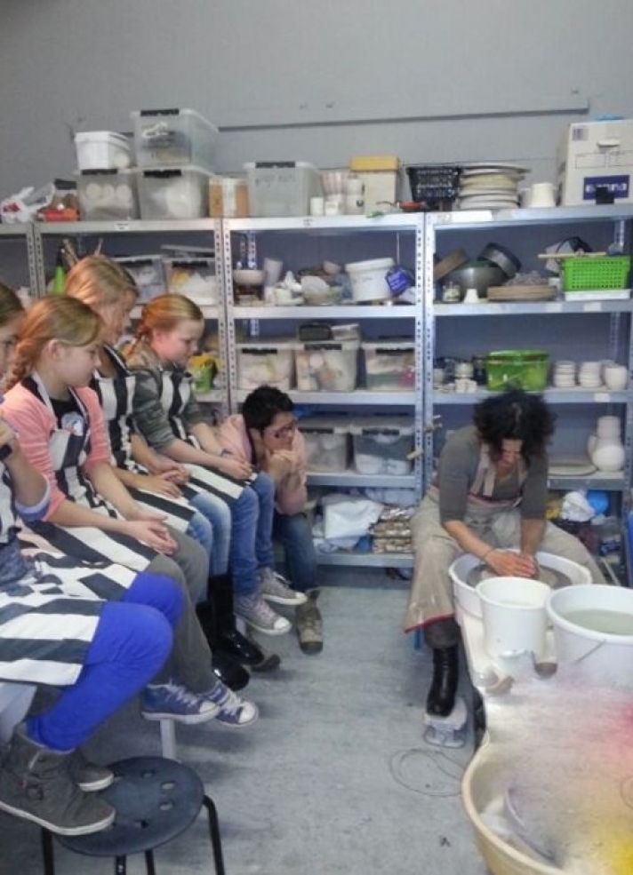 Zaterdag 2 november hadden we een kinderfeestje ‘pottenbakken’ in het atelier met Lies van Huet in de oude gevangenis de Blokhuispoort. Na gebeld te hebben en goede uitleg te hebben gehad, wat er ging gebeuren, kwamen we in een gezellige knusse ruimte met prachtige zelfgemaakte kunstwerken. Na uitleg van Lies zijn we begonnen. Ieder achter de draaischijf, een eigen gemaakte beker en ieder een naambordje. Tussendoor ranja met allerhande lekkers!! Na 3 weken mochten we onze eigen creaties ophalen, wat voor altijd een mooie herinnering zal blijven. We hebben een prachtige middag gehad. Prijs kwaliteit een dikke duim!!!! Was getekend Manon Roemer.