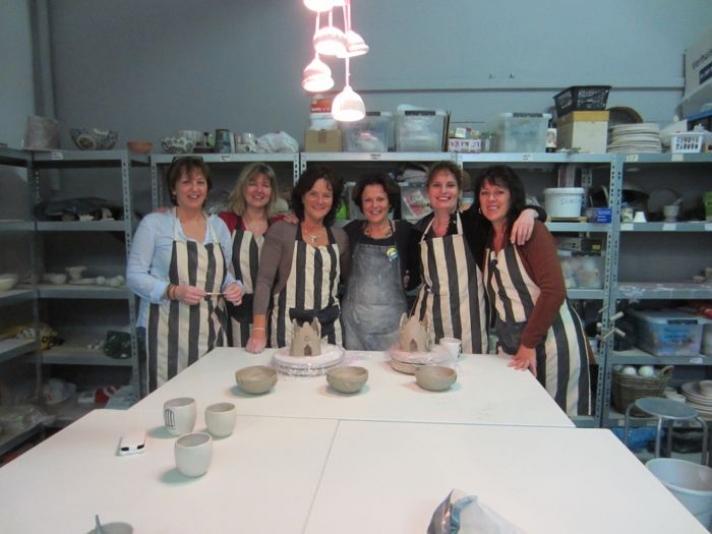Workshop ceramics. The book club from Millingen did a creative, inspiring workshop on 8 February in her studio. Lies gives clear explanations about the material and about the possibilities. She is very able to encourage us and to bring out our creativity. Everyone had the feeling: hey, can I do that? Creating touchstone balls and / or tea light holders and to our surprise, decorated each other’s pieces with a personal touch! Lies, superb! We are looking forward to our results when they come out of the kiln! Thanks for the lovely afternoon, Marianne