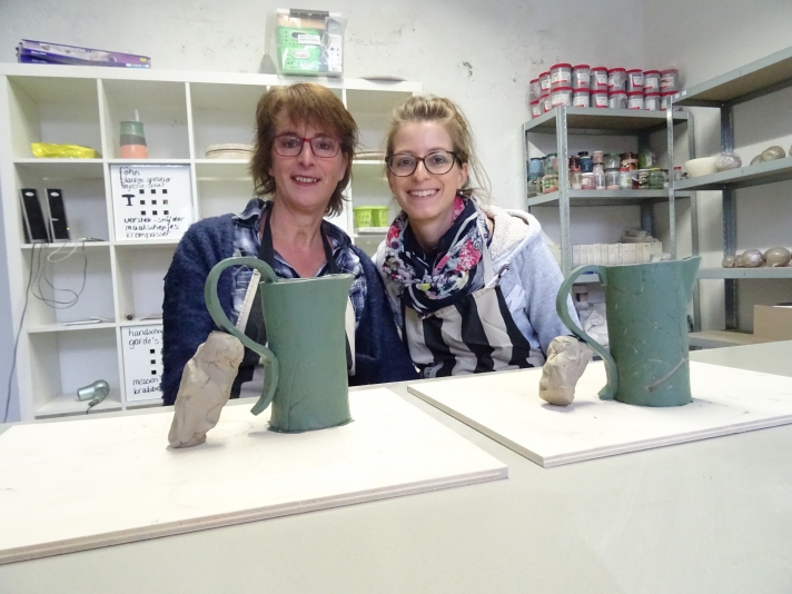 Had a very nice clay workshop at Lies Ceramics together with my mother. Lies had all the time for us and gave expert instructions to make sure that our juice jug did not break down in the kiln.Lies keeps an eye on the clock, which is certainly necessary becauseĀ you tend to forget all your surroundings whenever you are busy with clay work.