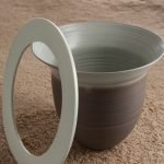 Mijn werk, een gedraaide steengoed reminiscense pot met deksel, toont een ode aan de Friese luchten. Door deze luchten, deze rijkdom aan kleuren, ben ik van deze provincie gaan houden..