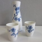 Tatoeage bekers. Een samenwerking tussen tatoeage kunstenares Imme Boehme ook op Facebook (!) uit Aken (D) en Lies van Huet. De door Lies handgedraaide, porseleinen bekers gaan van Leeuwarden naar Aken zodat Imme haar klassieke tatoeages erop kan tekenen en gaan weer terug naar Leeuwarden waar Lies de tekeningen inkleurt in het Delfts blauw. Handgedraaid porselein | 10 x 9,5 cm. Zij troffen elkaar tijdens het Jail Breake Festival in juni 2014 in de Blokhuispoort en Lies vroeg Imme op de ‘huid’ van porselein tatoeages te tekenen. En zo brengen zij drie werelden bij elkaar: draaien van porselein, tatoeeren en delfts-blauw schilderen.